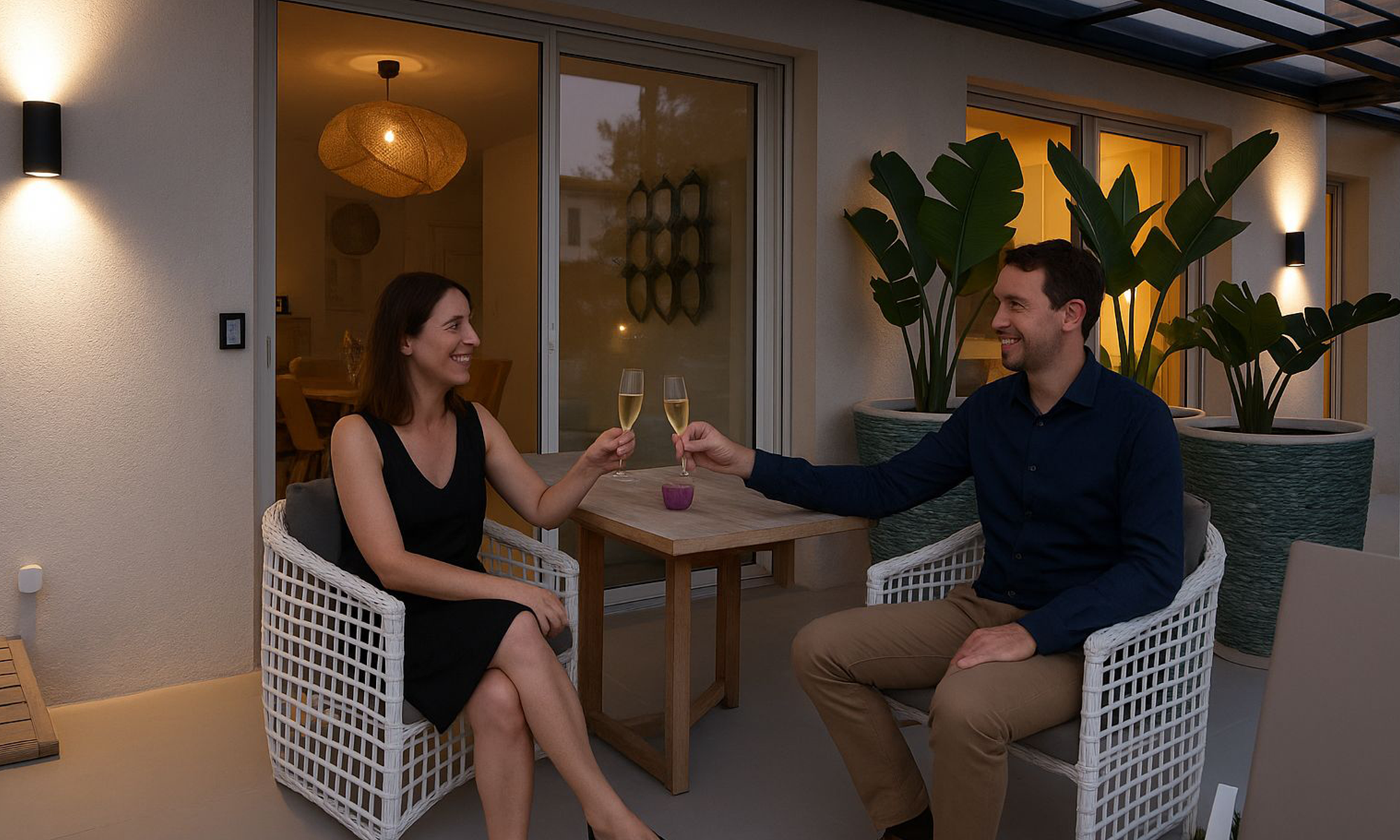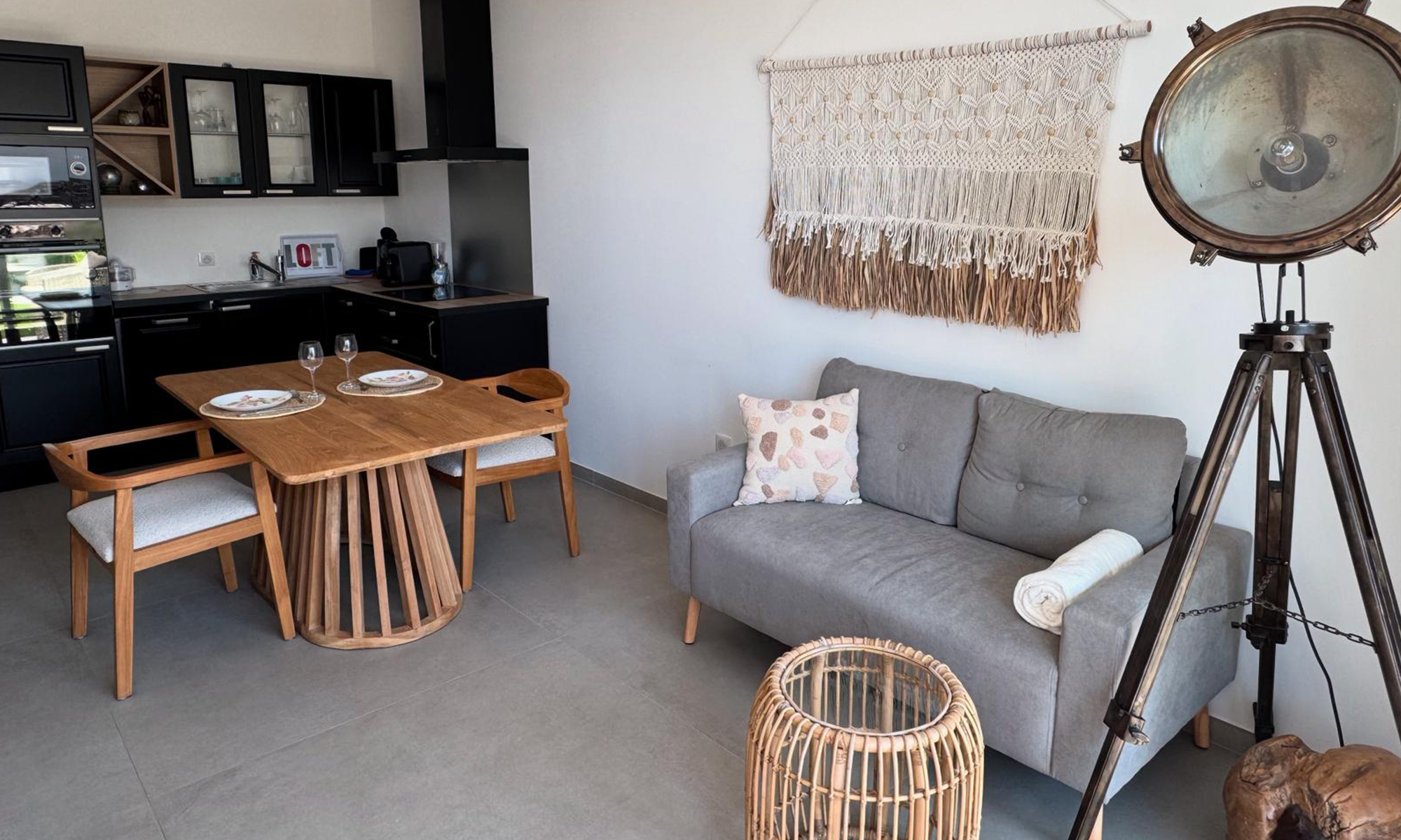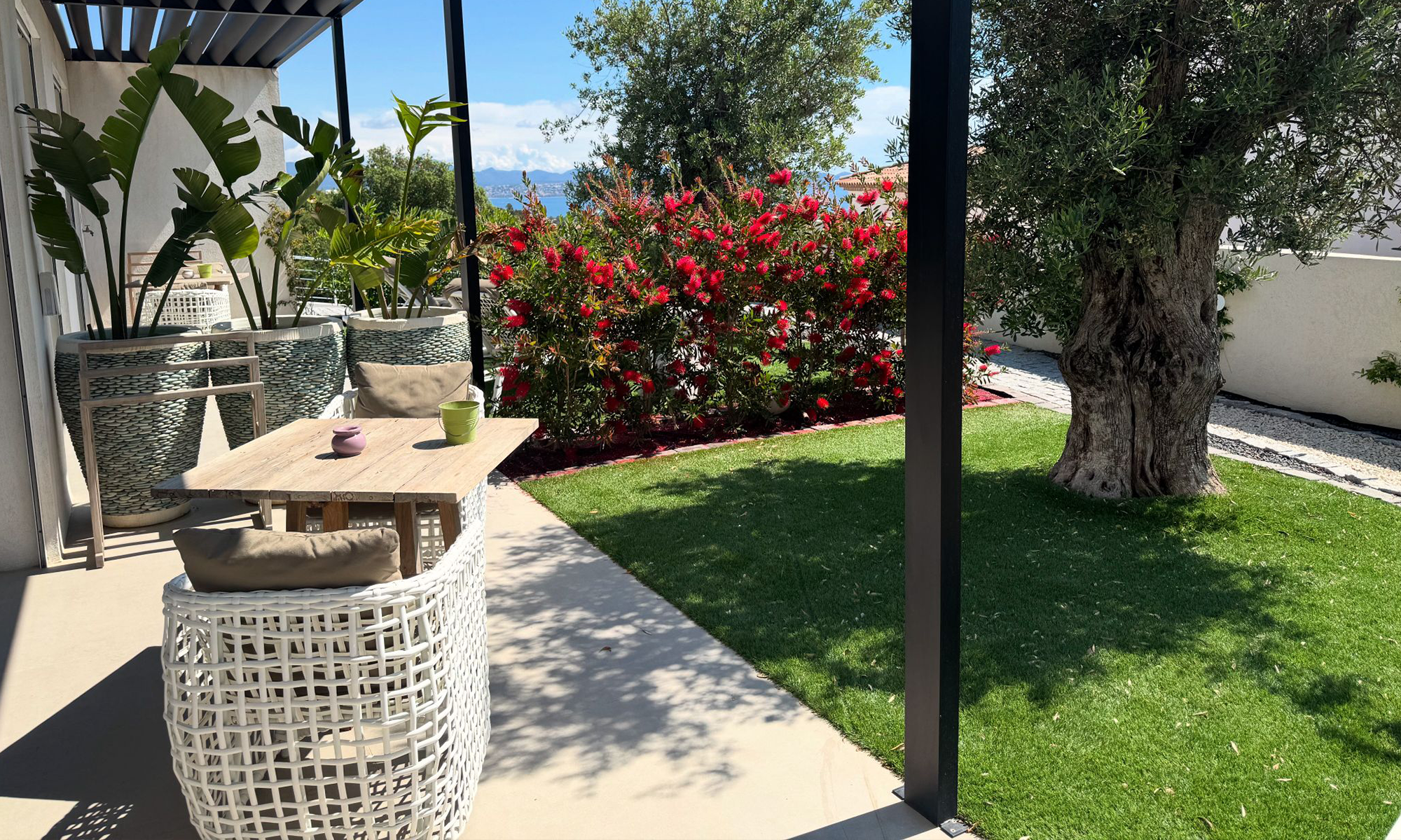 Idéalement situé en rez-de-chaussée, cet appartement combine parfaitement charme provençal et confort moderne. Son salon spacieux, décoré avec des matériaux locaux et des touches colorées, crée une atmosphère chaleureuse et accueillante. La grande terrasse offre un espace extérieur intime, parfait pour se détendre après une journée passée à découvrir les merveilles de la Côte d’Azur.
