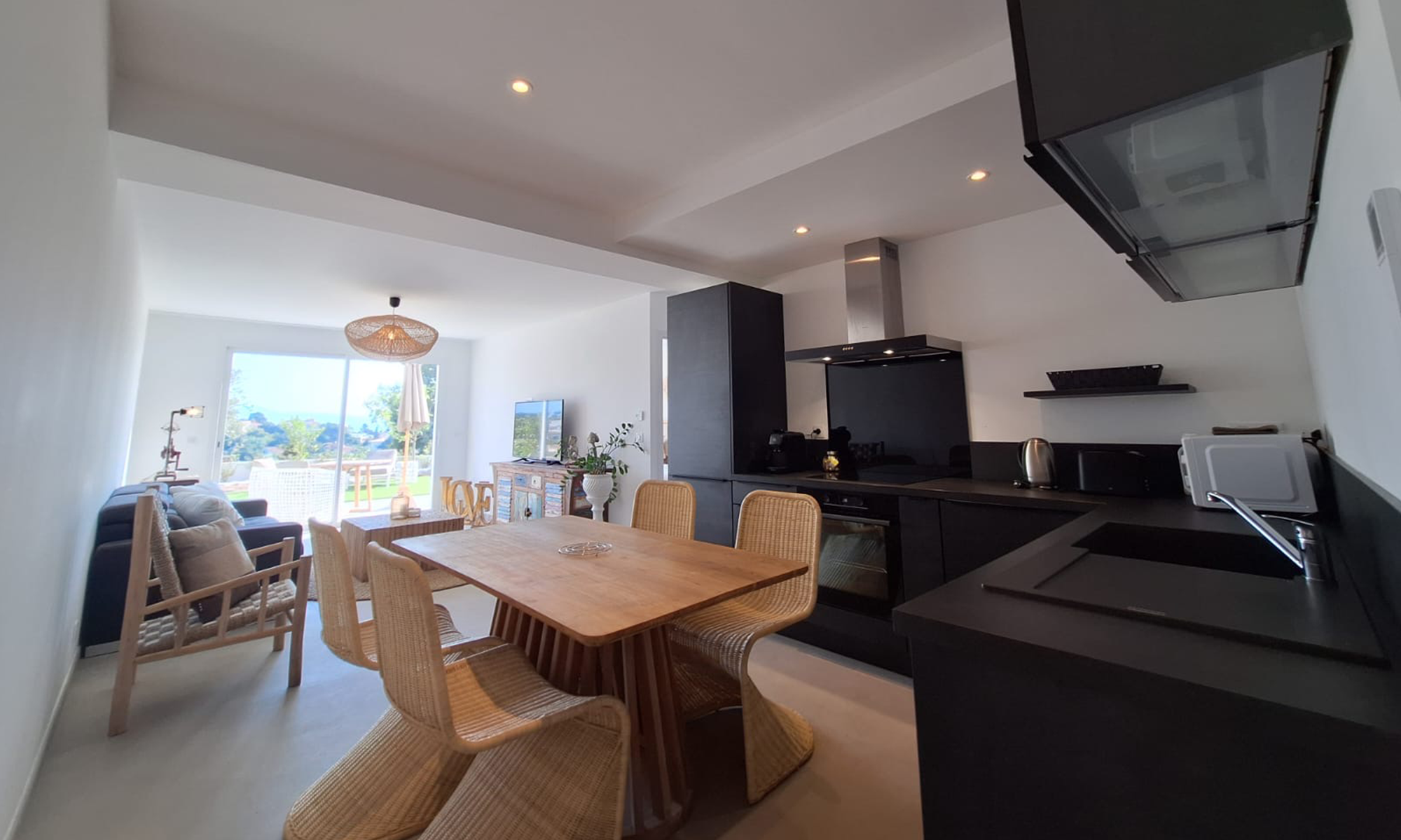 Aux Issambres magnifique villa contemporaine récemment bâtie, agrémentée de 4 appartements T2 de standing dédiés à la location saisonnière. Les appartements sont tous décorés avec des tendances venues tout droit d’Indonésie et chacun d’autre eux possède une terrasse et un joli jardin offrant une magnifique vue mer. Dotés d’une entrée privée, tous les appartements sont climatisés, constitués d’une cuisine entièrement équipée avec un four, un micro-ondes, un frigo combiné, un grille pain, une machine à café, une bouilloire, une télévision à écran plat. Le linge de lit et les serviettes sont fournis. Le vrai plus, c’est un coin ZEN commun, réservé uniquement aux 4 appartements. Vous ressentirez une ambiance relaxante et paisible, tout en profitant d’une petite piscine dédiée à ces 4 locations. Un endroit au charme certain, aux tendances Balinaises, une quiétude où vous vous plairez en contemplant la baie de St Raphael , Fréjus, la pointe du Dramont et les alpes du sud. La gare de Saint-Raphaël Valescure se situe à 10 km et l’aéroport le plus proche est celui de Nice