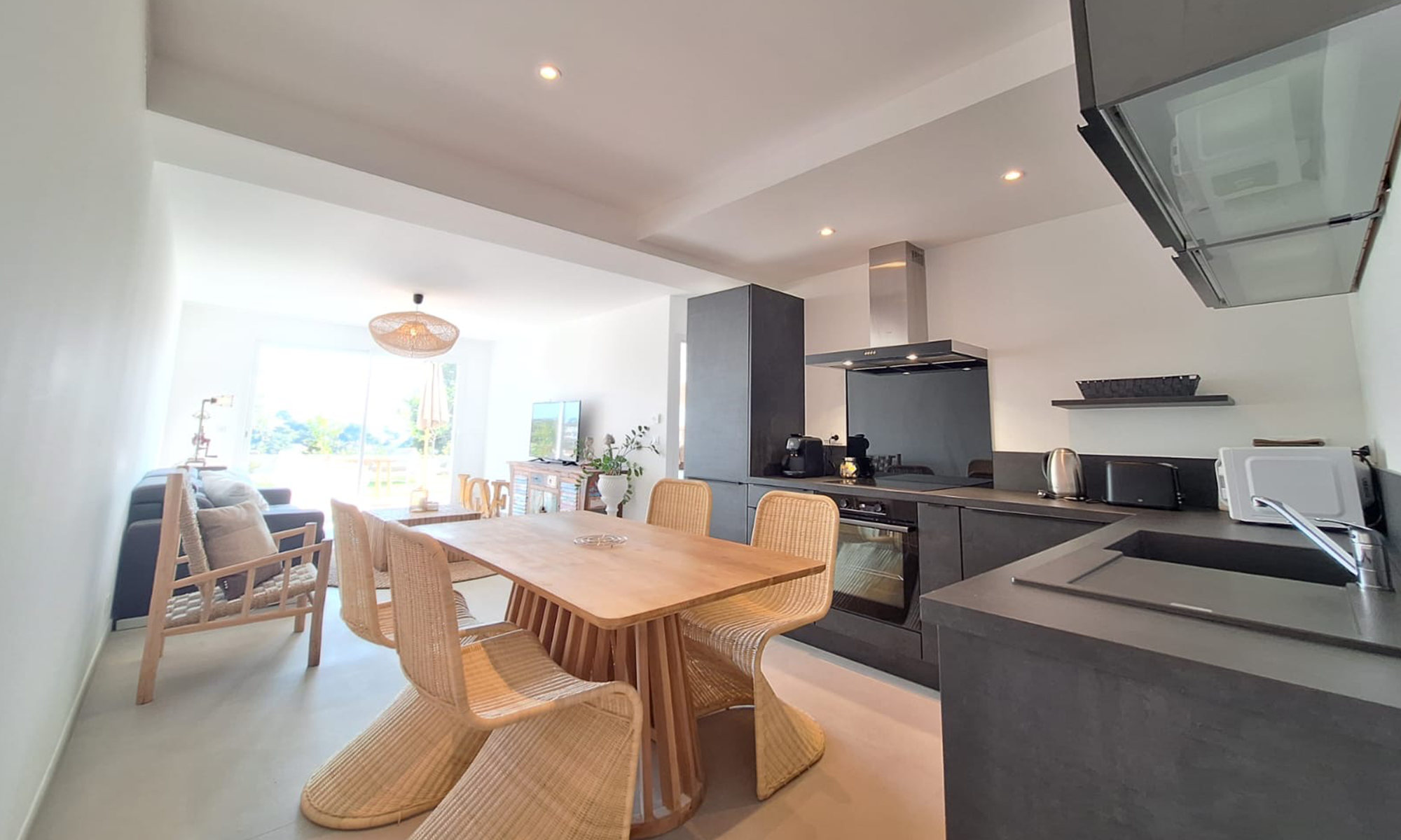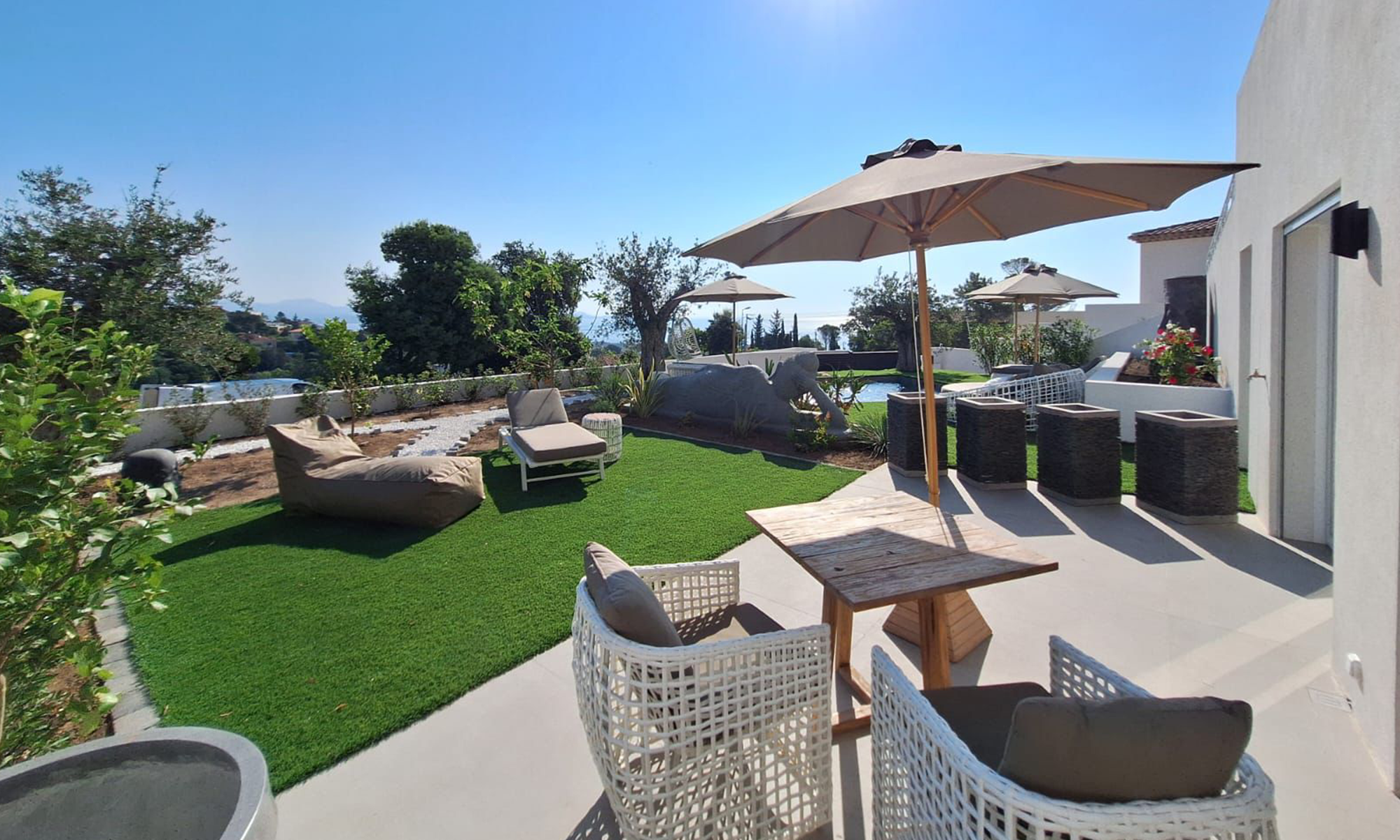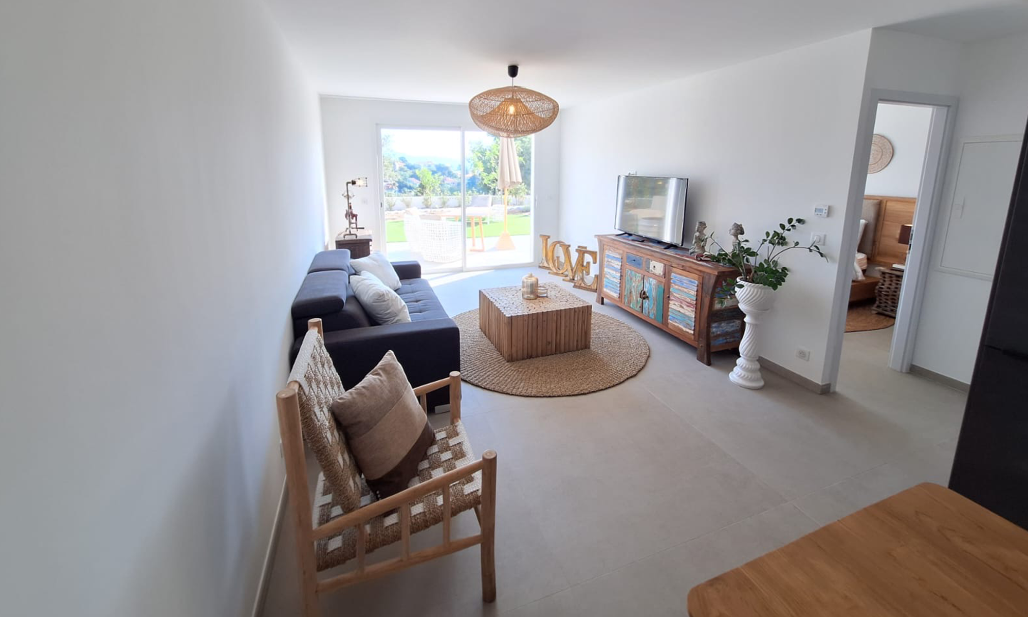 Ce bel appartement en rez-de-chaussée dispose d’une grande terrasse orientée plein sud, baignée de lumière tout au long de la journée. Idéal pour profiter du soleil de la Côte d’Azur, la terrasse est équipée de mobilier de jardin pour des moments de détente en extérieur, que ce soit pour prendre un bain de soleil ou savourer un dîner en plein air. L’intérieur est moderne et élégant, avec un espace de vie lumineux et spacieux qui invite à la relaxation.